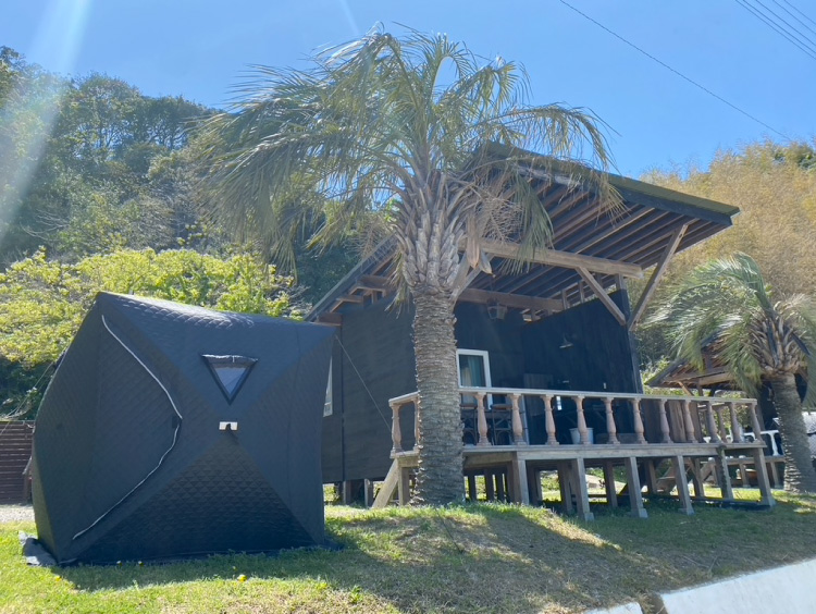 淡路島の中央部西海岸にあるキャンプ場!!異国感漂うキャビン・スタイリングテント・カフェ&バー!!すぐ隣には砂浜があり南国のプラーベート気分!!