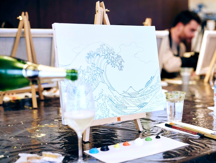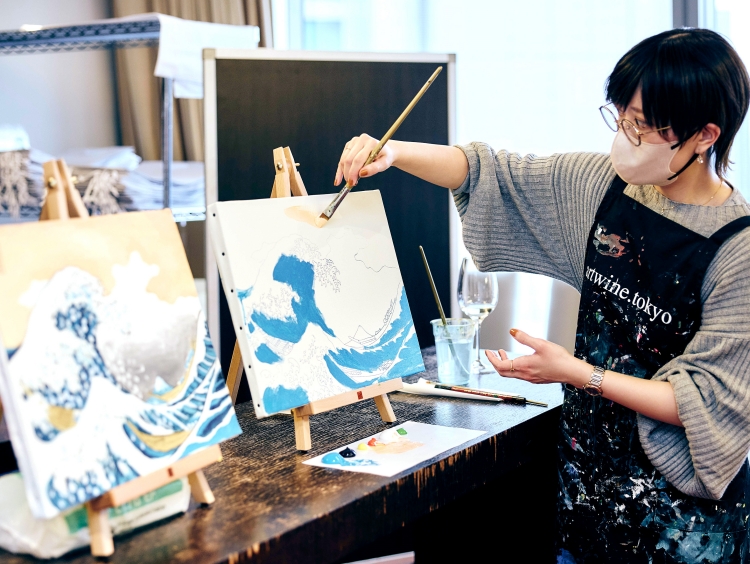 著名な画家の絵画を180分間で模写するアート体験とペアリングワイン アロフト東京銀座会場
